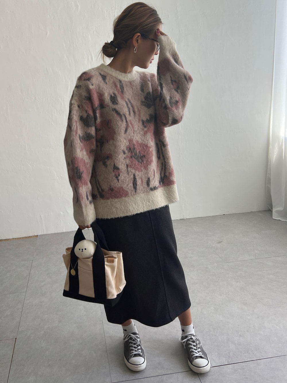 トレンドのジャカード柄ニットコーデ❣️ もんやり花柄をしっかり起毛した LBC オリジナル柄‼️今年らしい印象に仕上がる一枚で主役級なニット合わせがポイント🎵