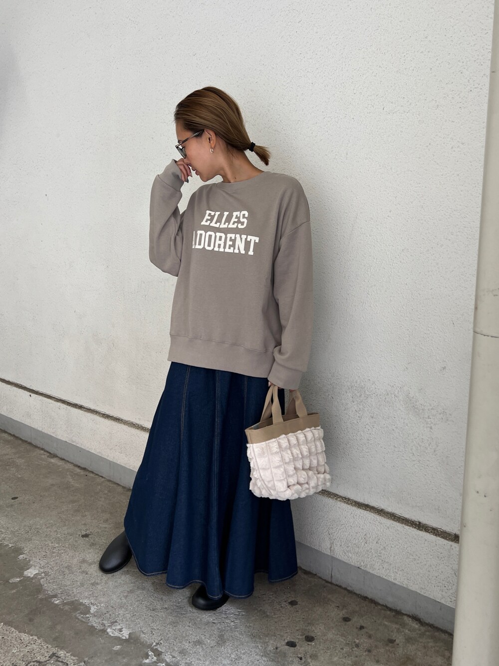 シンプルなカレッジロゴ風のスウェットは、秋冬コーデに大活躍! スカート、パンツどちらも合わせることができ、インナーに白Tを入れて今っぽい時レイヤードを楽しんだり、アレンジの幅が広いアイテムです。