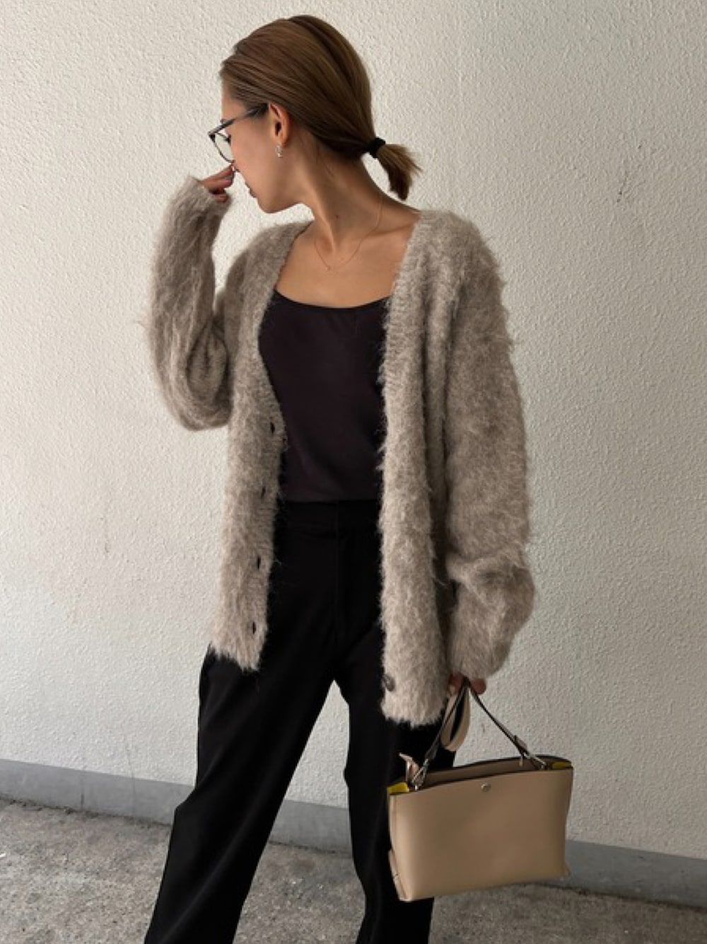 ふんわり素材であたたか&おしゃれ ウール混のふわふわとしたやさしい毛並みのニットカーディガン。 ややゆったりサイズの羽織りやすいシルエットです。