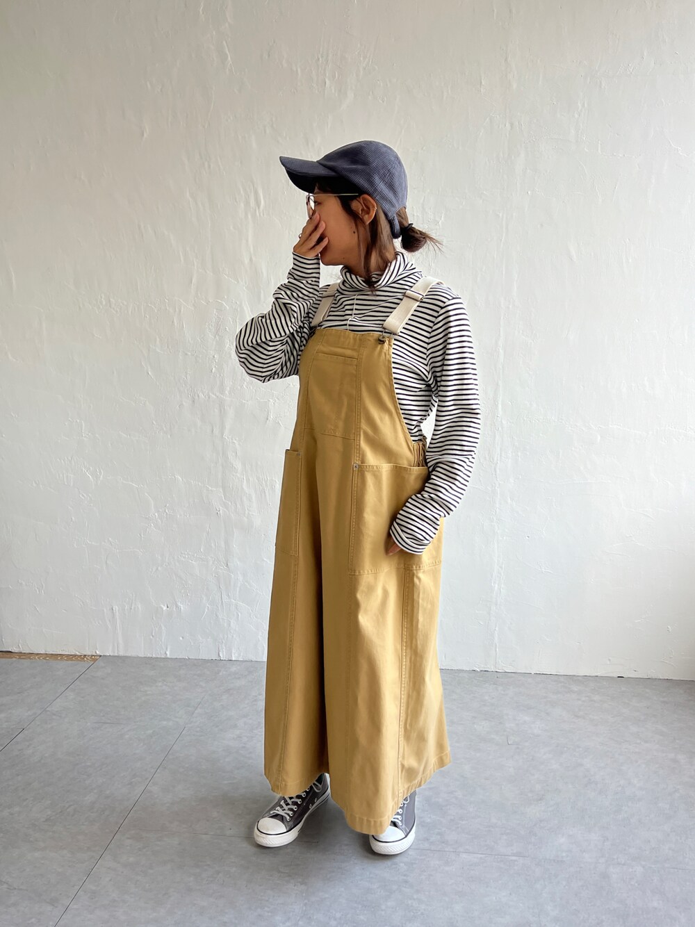 152cmコーデ サイドの大き目ポケットや織りテープの肩紐など、ワークな要素が光るジャンパースカート。 バックスタイルはゴムギャザー、さらにバックベルト付きで後ろ姿もサマ見えします。 【素材】 カジュアル素材だけどキレイ見えするバックサテン。 【おすすめコーディネート】 ロゴTやスウェットなどカジュアルなトップスはもちろん、フリル襟やレースアイテムなど甘めのアイテムをMIXするのも◎ 半袖から長袖、ニットまで、インに着るアイテム次第でロングシーズン着回せるのが魅力です。