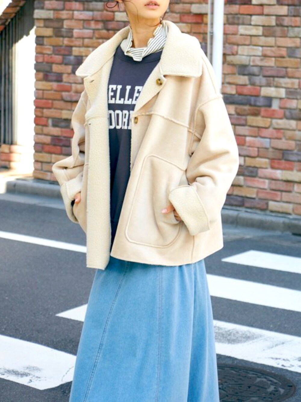 LBC で昨年好評だったリバーシブルジャケットに襟がついてよりカジュアルなシルエットに! カジュアルなコーデュロイ・ボア素材のアイテムをぜひ❤️