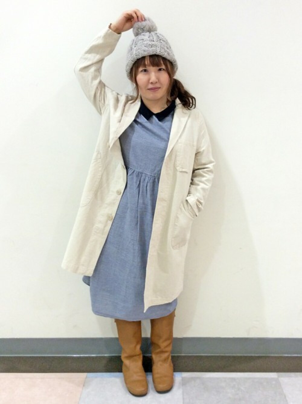 LBC STAFF(LBC HEAD OFFICE)のステンカラーコート「コットンリネンショップコート」を使ったコーディネート