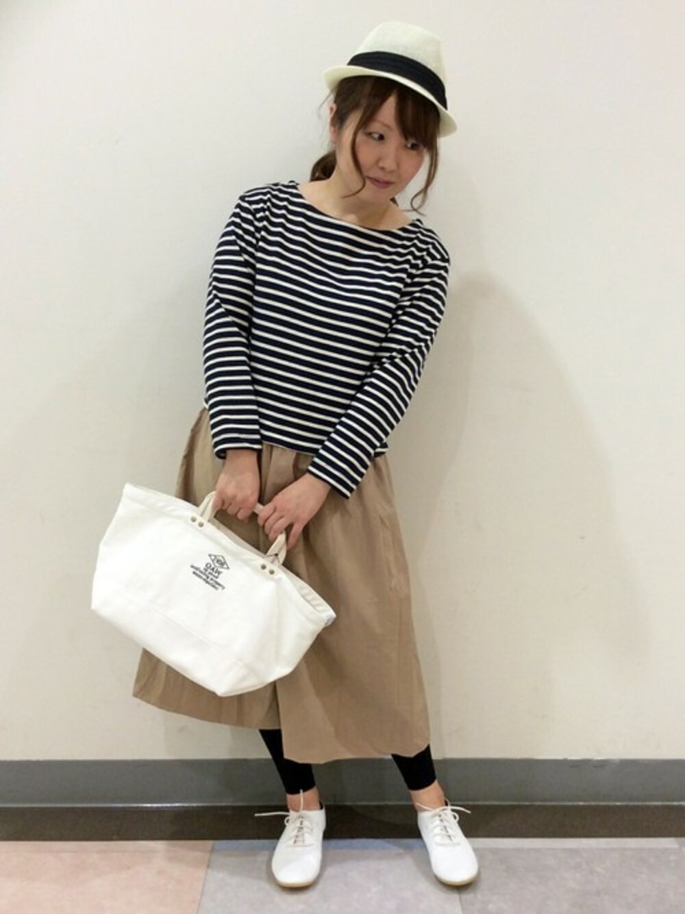 爽やかなボーダーをあしらったボートネックのカットソーと、ふんわりした印象が女性らしいスカートをドッキングしたワンピース♪ 一枚でスタイリングが完結する優秀アイテムです。 小物はホワイトで統一し、春らしささらにUP◎