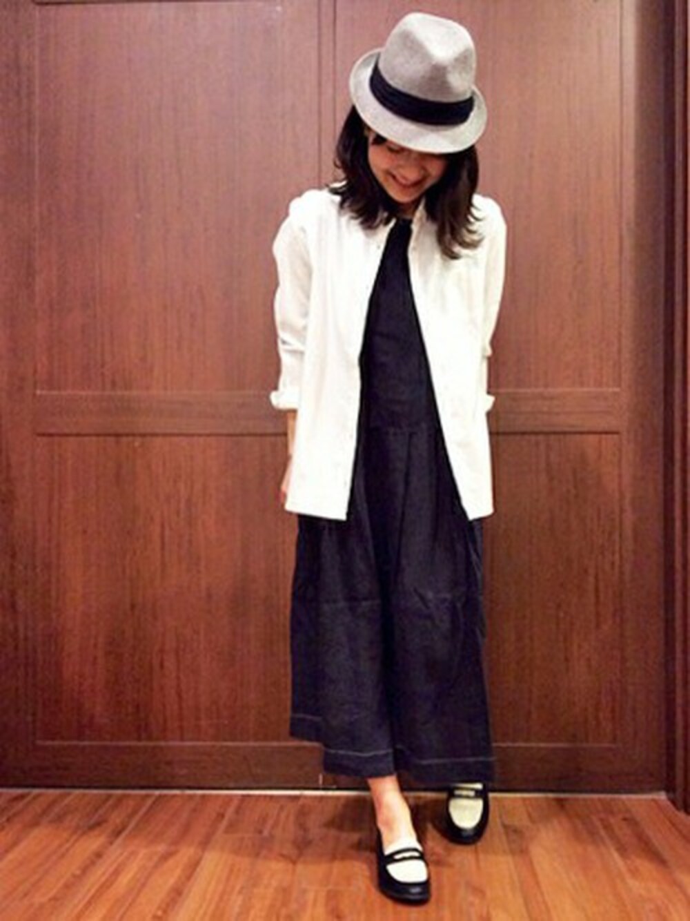 モノトーンでまとめたシックなワンピーススタイル。 ワンピースは麻100%のノースリタイプなので、ブラックでも重くなり過ぎません。 シャツはレーヨン混の落ち感が魅力。襟後ろにビジューが配置されモードな一面を兼ね備えたアイテムです。