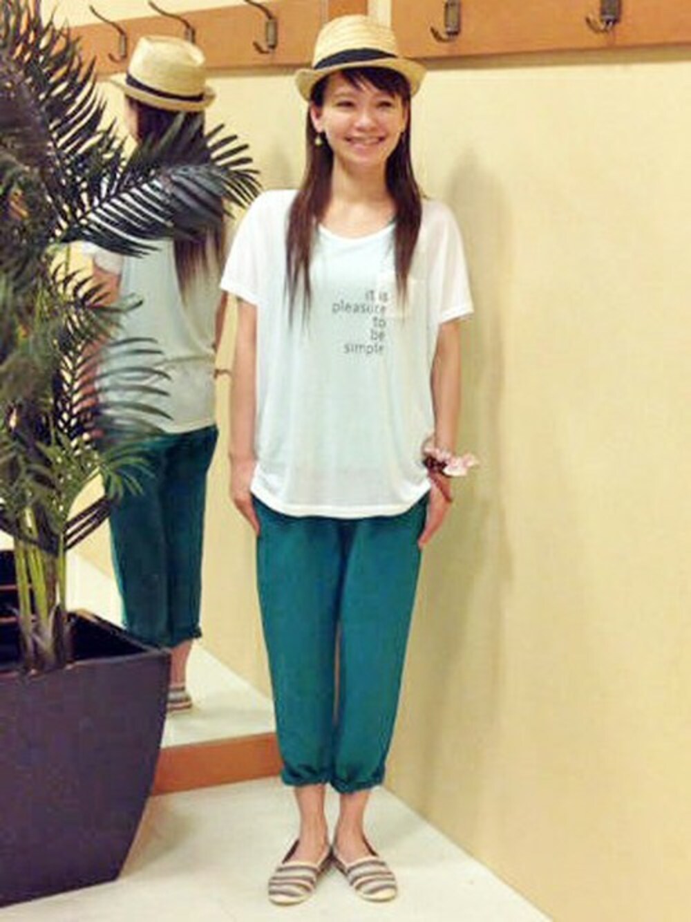 ゆるすぎないリラックスコーディネート♪ グリーンが新鮮なパンツは、コットンリネン素材で暑い季節もさらりと着れます。 裾をロールアップして抜け感のあるTシャツをプラスすると、リゾート感もUP!