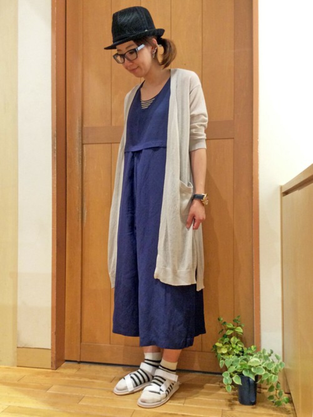 ロング×ロングの楽チンコーディネートです。 デニムのように見えるサロペットは、リネン×レーヨンの落ち感のあるしなやかな素材で、これからの暑い季節にもさらりと着れます。 今シーズンのトレンドでもあるワイドシルエットは、おしゃれなのにリラックスできる優秀な一枚。 全体がふんわりしているので、ハットとスポーツサンダルをハズシアイテムにセレクトしました。