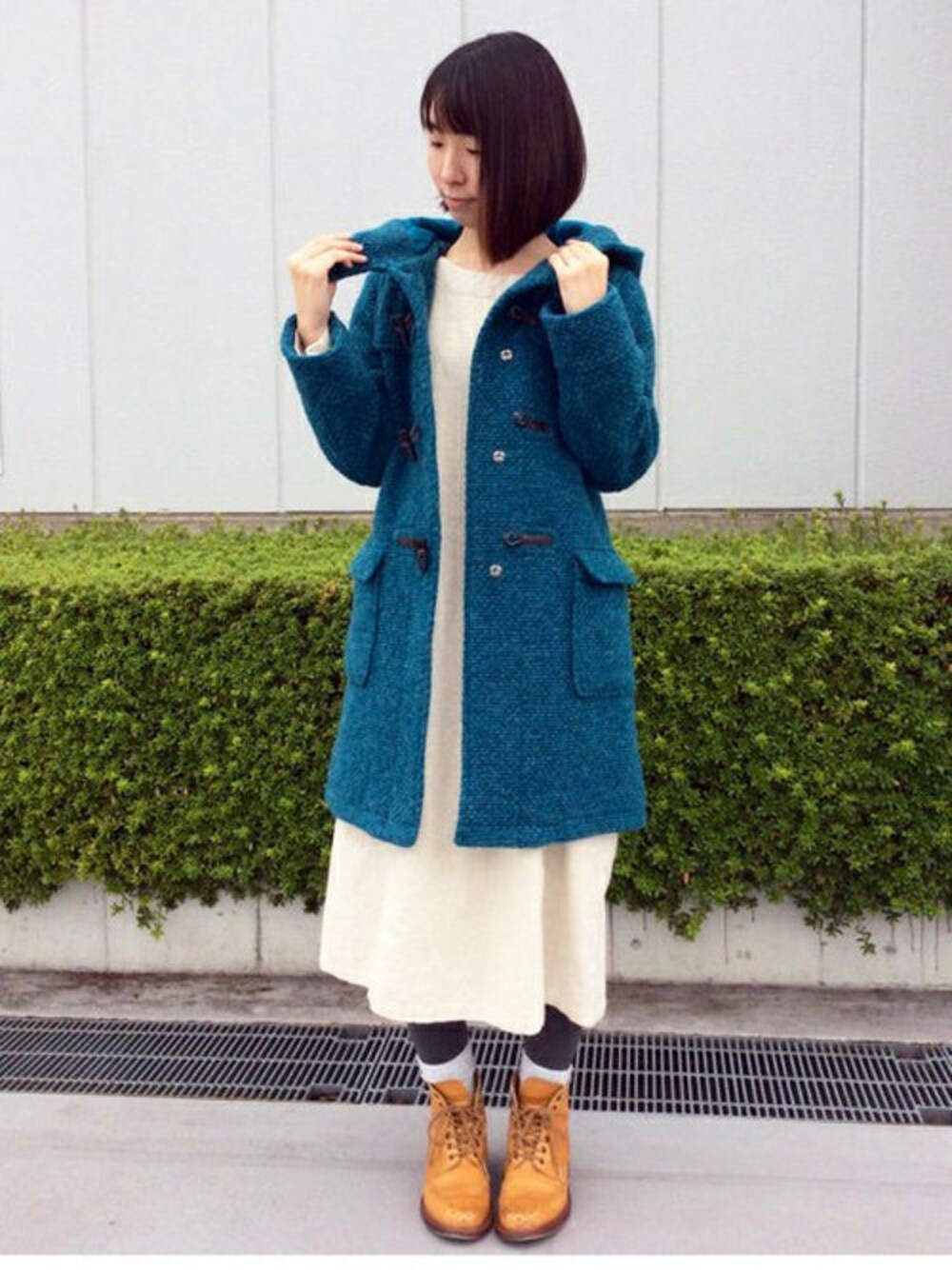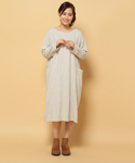 冬におすすめのコート×ワンピーススタイルです。 ポコポコとした表情がかわいいスライバーニット素材のダッフルコートは、たっぷり空気を含んで編んでいるため、とっても軽くて暖かかいのが特徴です。 インは、リネンのはいったナチュラルな風合いがやさしい雰囲気のサックワンピース。裏地付&起毛素材で一枚であったかいシンプルなデザインです。