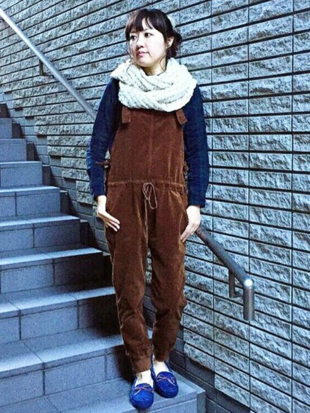 ボーイッシュなサロペットスタイル。 サロペットは、コーデュロイならではの風合いと肩やウェスト部分にはいったリボンのような紐使いがかわいい1枚。 大きめなポケットで小尻に見える効果も狙えます♪ カジュアルになりすぎないように、ヘアスタイルや小物使いは女の子らしくするのがおすすめです。