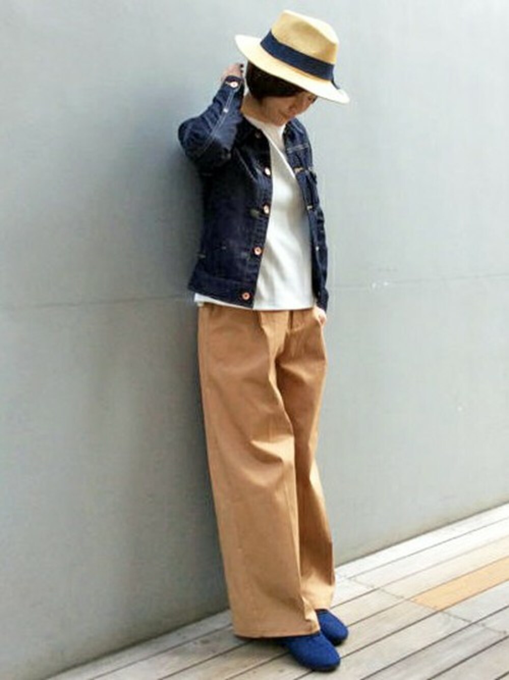 春カラーを意識したきれいめカジュアルコーディネートです。 注目のデニムを、アウターでとりいれてみました。 合わせ安やすいハーフ丈だから、ボトムを選ばないデニムGジャンはワードローブに一枚は持っていたいアイテムです。 ワイドパンツは太ももをカバーしてくれる強い味方! 丈も長めでプレスも入ってるから、縦ラインを強調してくれ脚長効果も期待出来ちゃいます♪