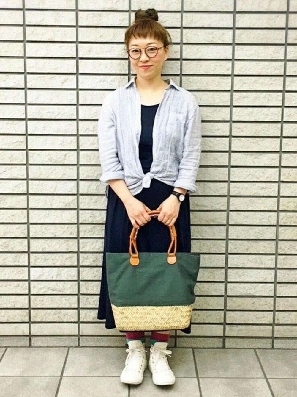 GWにオススメお出かけコーディネート。 肌ざわり良いカットソー素材のノースリーブワンピースにシャツを羽織で合わせてみました。 着心地がよく動きやすいので、お出かけにオススメです。 ネイビー×カーキ×ボルドーの色あわせが、上品で落ち着いた雰囲気で◎