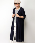 深みのあるネイビーと淡いホワイトのバランスが上品な組み合わせです。 トレンドのVネックのワンピースはリネン素材で清涼感◎ 丈の長い羽織りと合わせ、ゆったりした印象にしてみました。