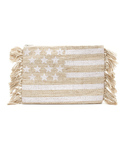 ボリュームのあるフリル袖Tシャツが主役のコーディネート。 甘めのアイテムをワイドパンツにトップスインして落ち着いた雰囲気に◎ リネン素材の国旗柄クラッチバッグをアクセントにしてみました♪