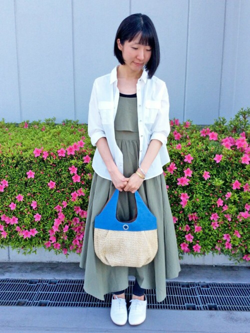 エアリー感のあるキャミワンピースを使ったコーディネート。 胸元のフリルが女性らしい雰囲気になってます。 キレイめのミリタリーシャツを合わせ、爽やかな印象にしてみました♪