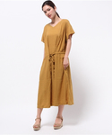 パリッと明るいマスタードカラーのワンピースを主役にしたコーディネート。 ゆったりとしたデザインで落ち感が◎ サンダルや雑材アイテムで初夏のお出かけスタイルにしてみました♪