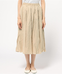 Vネックのブラウスとフンワリスカートを合わせたコーディネート。 ストライプ柄が夏らしい印象で◎ ホワイト×ベージュで清涼感のあるスタイルにしてみました♪
