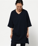 Vネックのチュニックを使ったコーディネート。 袖丈が長めなので細身のボトムスとの相性◎ サンダル・キャンバスバッグでカジュアルなスタイリングにしてみました♪