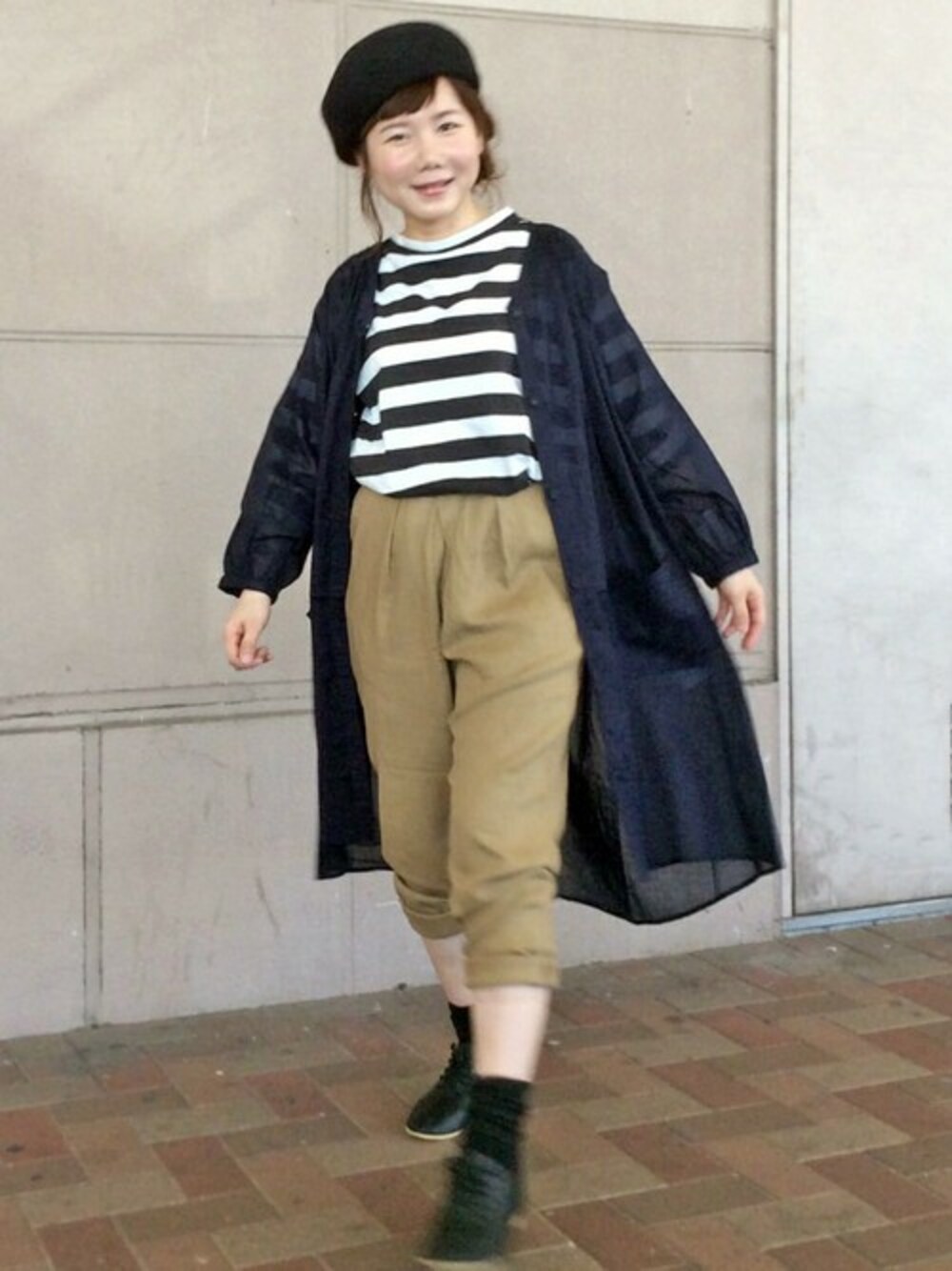 ワンピース使ったナチュラルコーディネート。 今年らしいビッグシルエットのボーダートップスに、ふんわりとしたワンピースをレイヤード。 ベージュのパンツを合わせナチュラルな雰囲気になってます♪