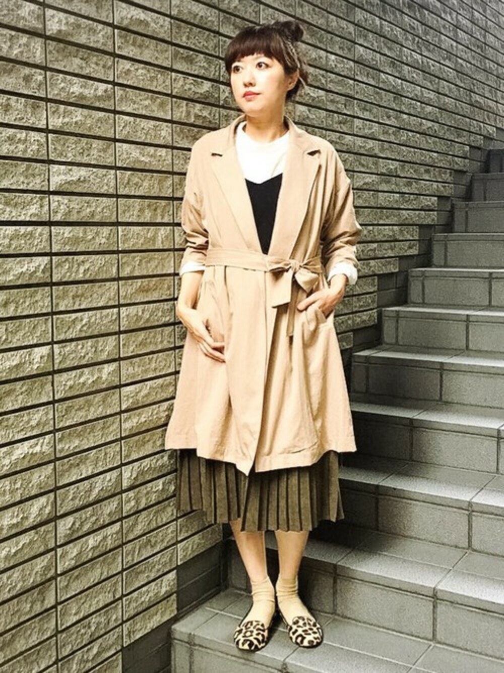 ビンテージ風コートを使ったコーディネート。 共布ベルトでメリハリをつけたキレイめスタイルにしてみました♪