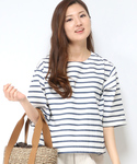 ボア素材が今年らしいコンパクトなブルゾンスタイルです。 ウエストをマークできるサロペットと、ボーダーのトップスに合わせてかっこ可愛い印象に仕上げました♪