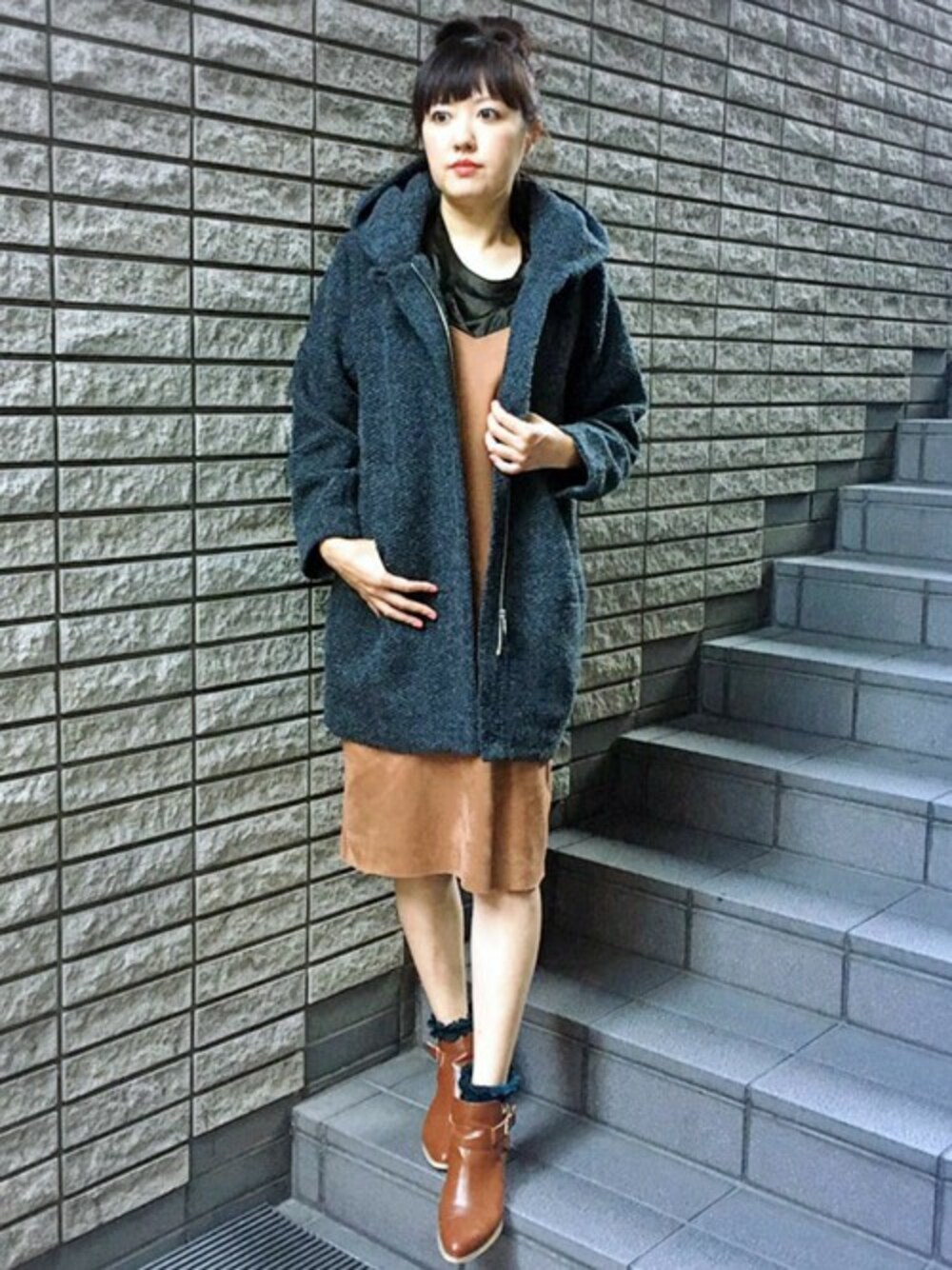ワンピーススタイルにコートをON♪ やさしいグレーのコートは、ふわふわと軽いのにしっかり暖かい、そんな良いとこ取りな着心地が人気のスライバー素材を使用しています。 長めの丈感で気になる部分をカバーしてくれるのもうれしいポイントです。