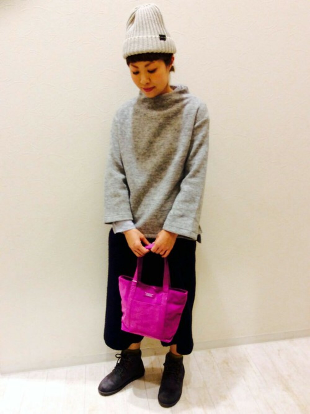シックなカラーでまとめた休日コーデ。 ナチュラルで風合い豊かな杢カラーのトップスは、ゆるっとしたシルエットが今年らしいデザインがポイント。 着丈が長く、後ろはヒップに少しかかる丈で安心感があります。 半端丈のパンツ×ショートブーツでカジュアルな雰囲気に仕上げました♪