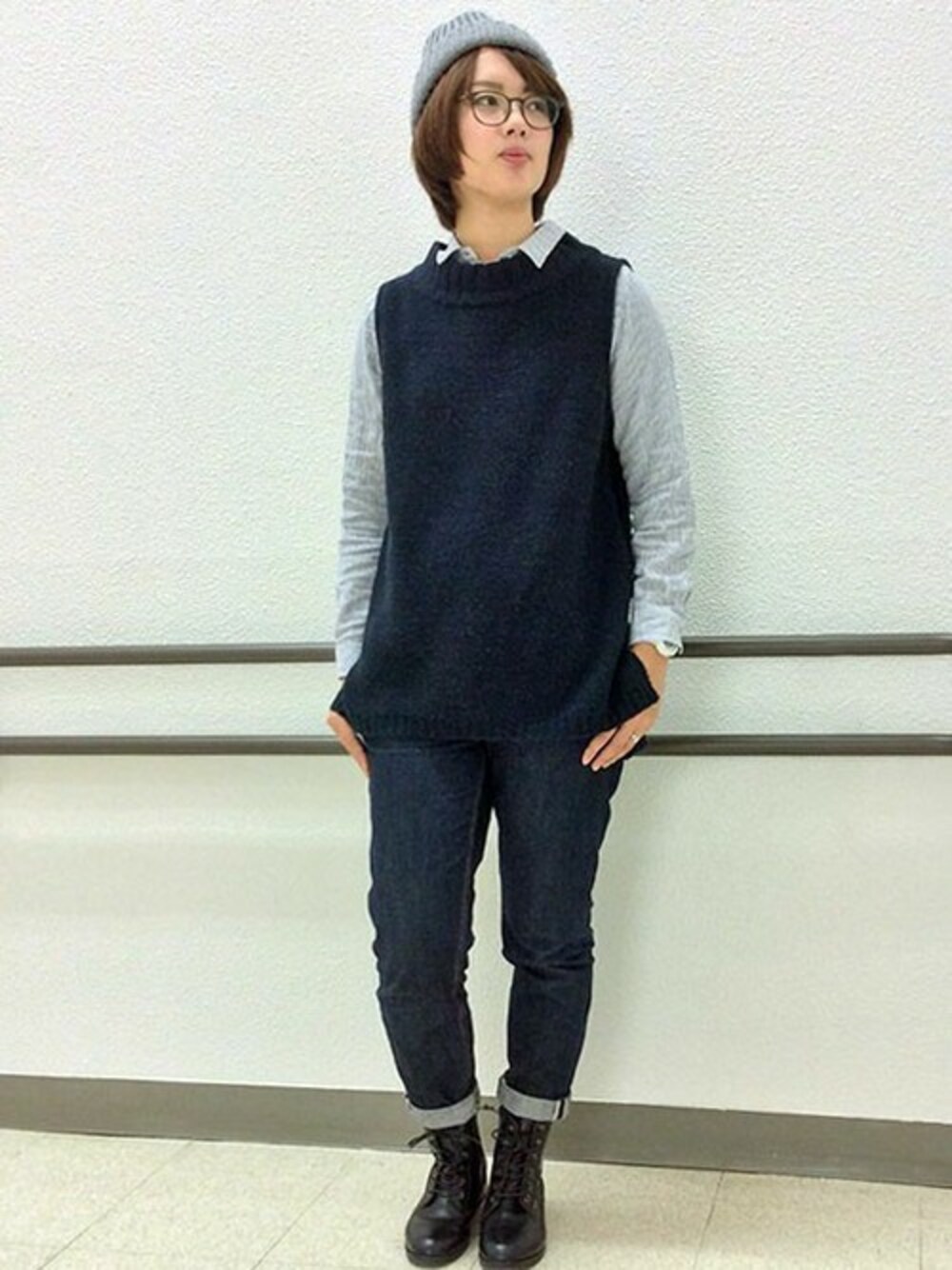 LBC STAFF(LBC HEAD OFFICE)のベスト「アクリルナイロンスリットベスト 」を使ったコーディネート