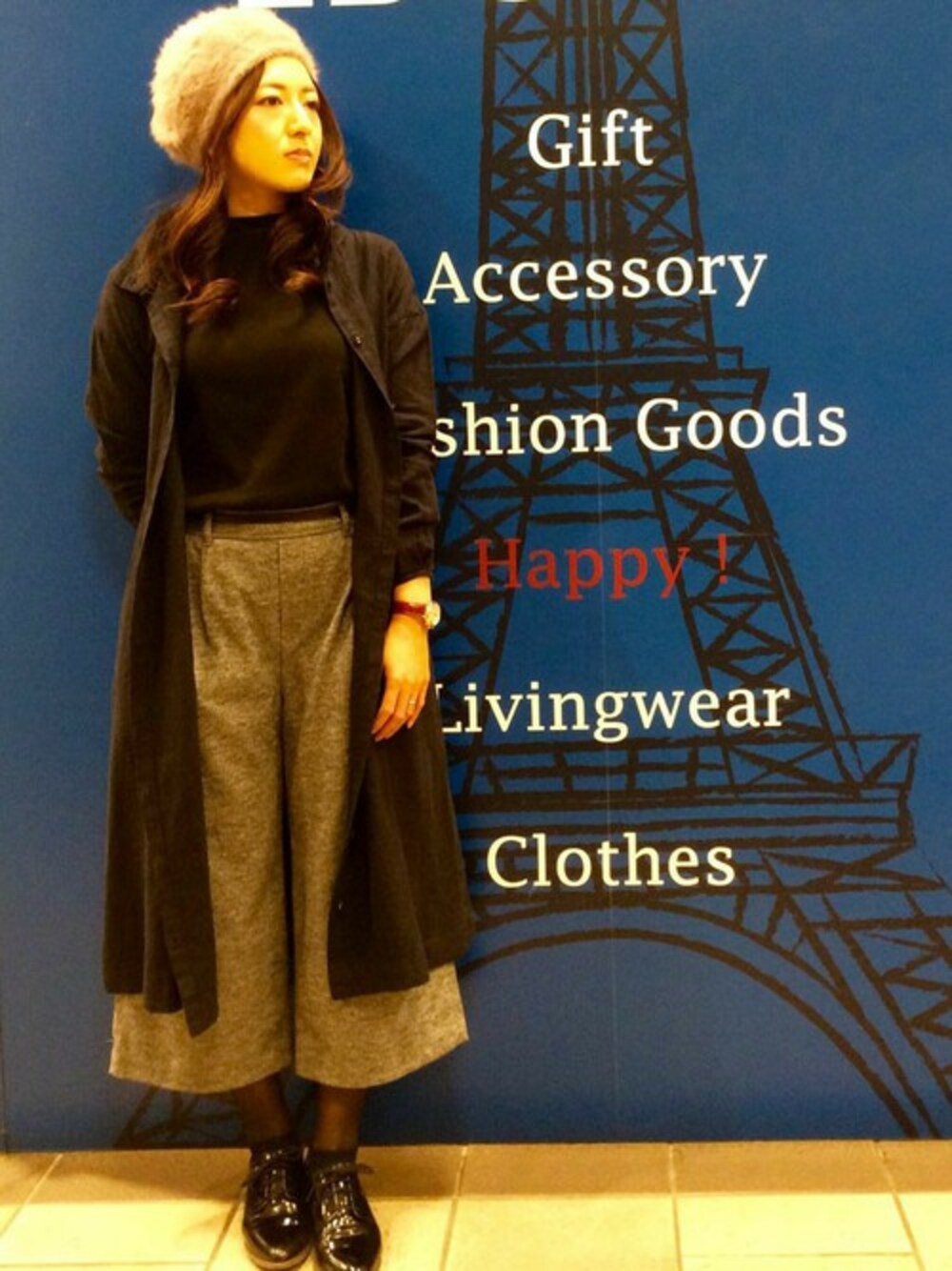 大人の女性らしいワントーンコーディネート。 長めの丈感が今年らしい羽織、実は、前後どちらを前にしてもOKのワンピース。 リネンならではの粗野な風合いはそのままに、レーヨン混で落ち感を加えた長いシーズン着られる素材感となっています。 冬の間はパンツやタイツと合わせて、あたたかくなったら一枚でと着回し力の高さもピカイチ♪