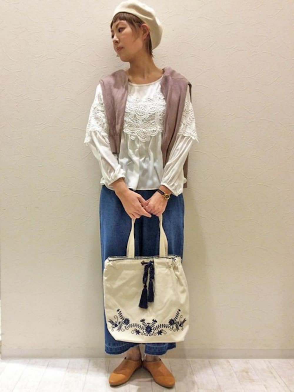 ナチュラル×デニムのミックスコーデ。 レースを贅沢に使った春らしさ満点のブラウスは、ボリューム感のあるシルエットながら落ち感のある素材と短めの丈感で重くならずスッキリとした印象。 デニムやチノパン、ミリタリーパンツなどを合わせてカジュアルダウンさせるのがおすすめです♪