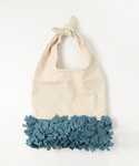 きれいめコーデにカジュアルな小物をあわせたミックススタイル。 満開のお花が咲いているような、カラフルフリンジが目を引く「Lilas Campbell(リラキャンベル)」のバッグ。 カジュアルなキャンバス地とのコントラストも素敵で、コーディネートを彩ってくれること間違いナシ! やさしい色使いでまとめたコーデにブルーの映えます♪