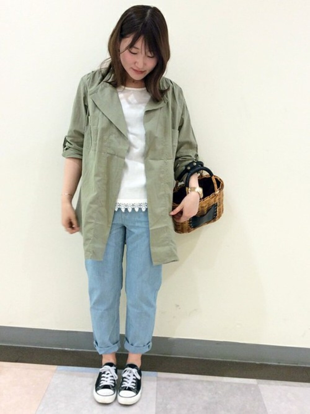 GWおでかけコーディネート♪ メンズライクなビッグサイズ感が今年らしいサファリテイストのシャツアウター。 きれいめにあわせてかっこよく、カジュアルにあわせてアクセントに、と一枚でいろんなアレンジが楽しめそうです。