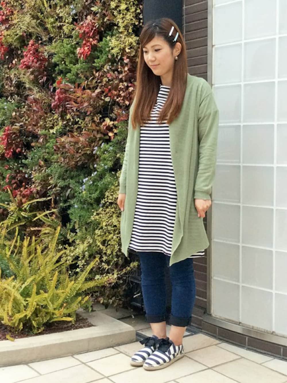 sayaのワンピース「omボーダー袖折り返しワンピース 」を使ったコーディネート