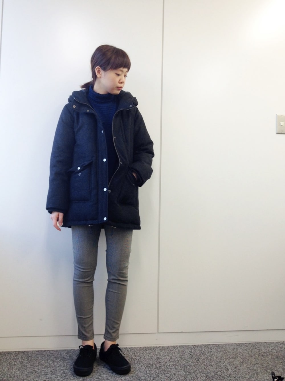 おかだのダウンジャケット/コート「ウールブレンドフラノ中綿コート」を使ったコーディネート