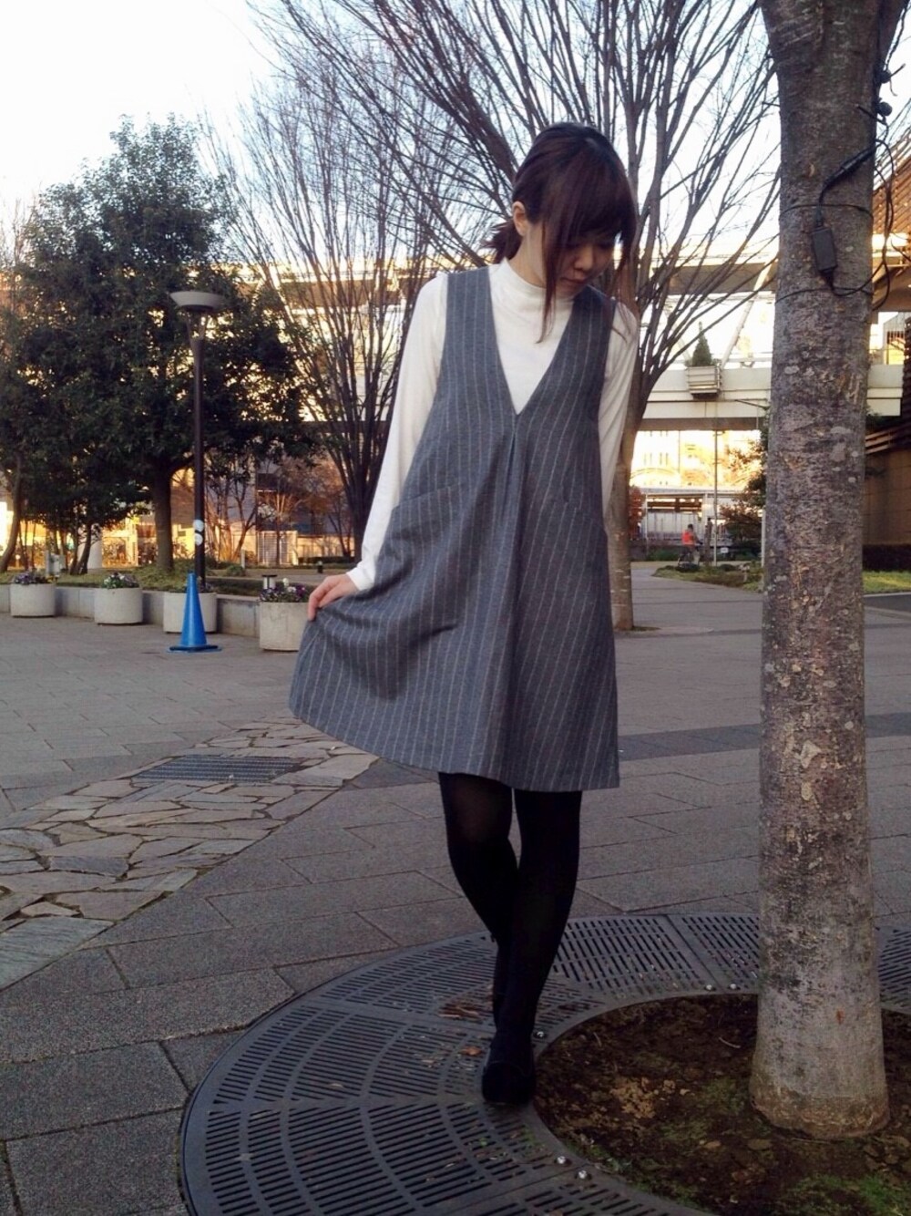 ふんわりAラインのストライプワンピースは ハイネック合わせがオススメです^_^