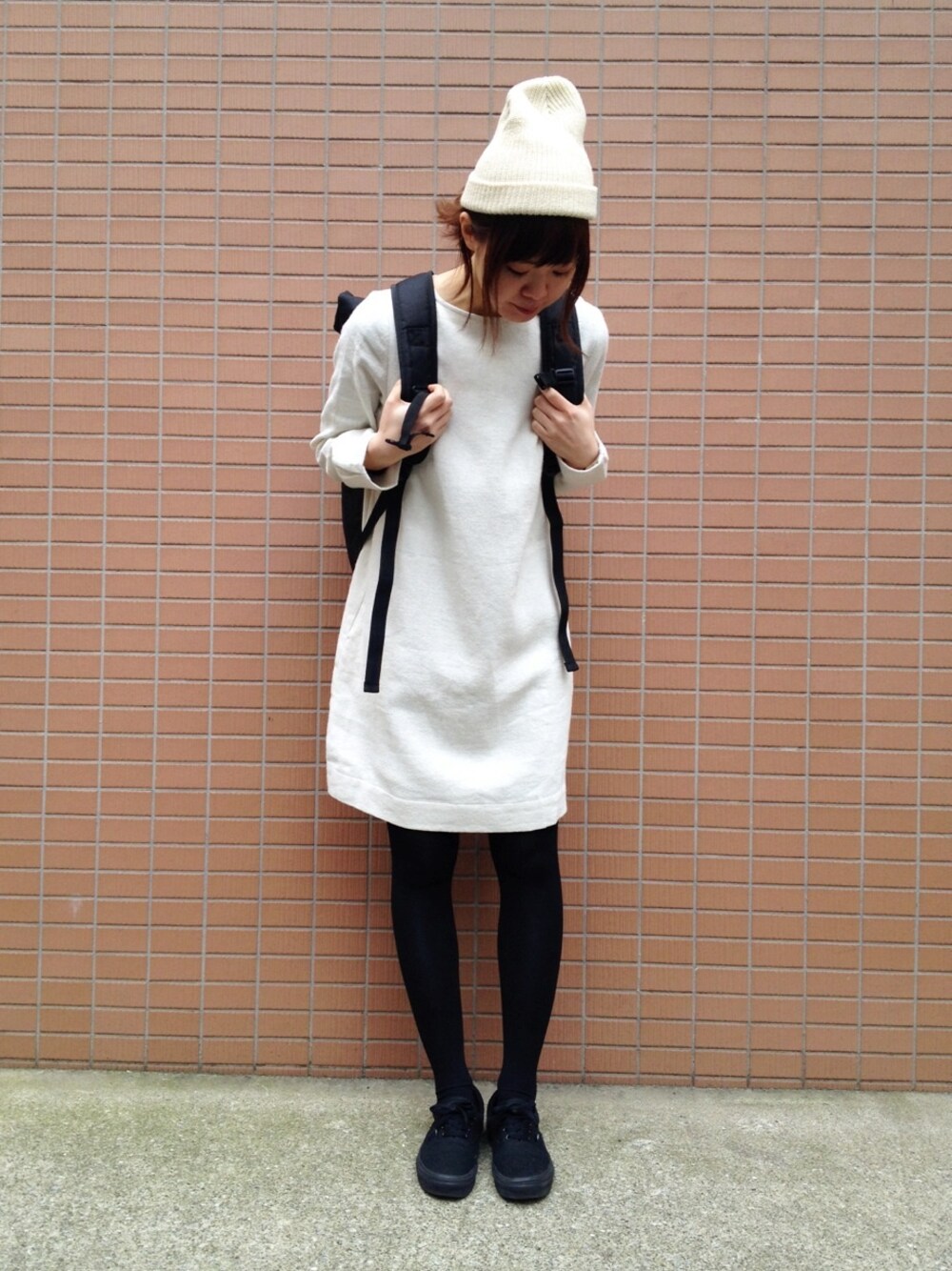 おかだ(LBC HEAD OFFICE)のワンピース「コットンリネンウールサックワンピース」を使ったコーディネート