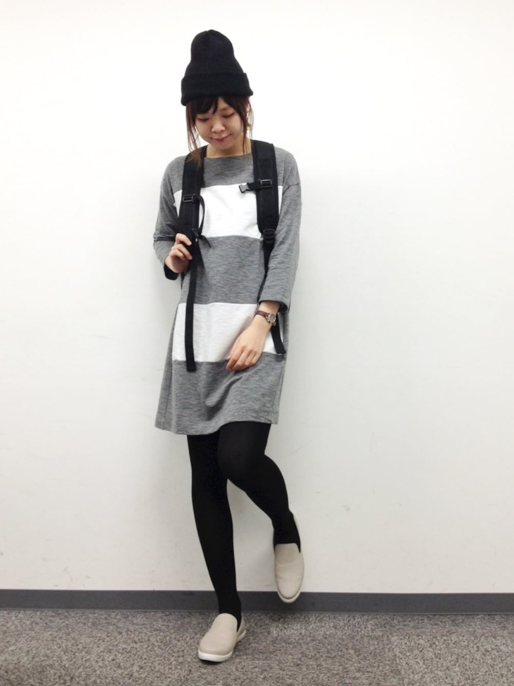 太ボーダーチュニックを ワンピースで着てみました(^O^) 小物使いでカジュアルに!