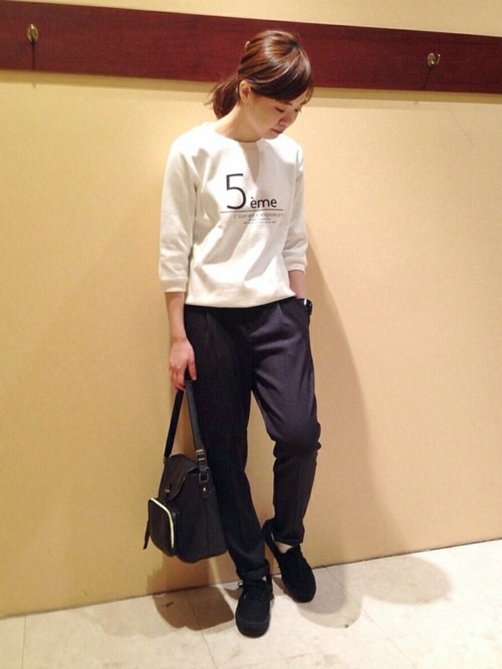 シルエットが美しいキレイ目パンツに スウェットトップスでこなれ感を。