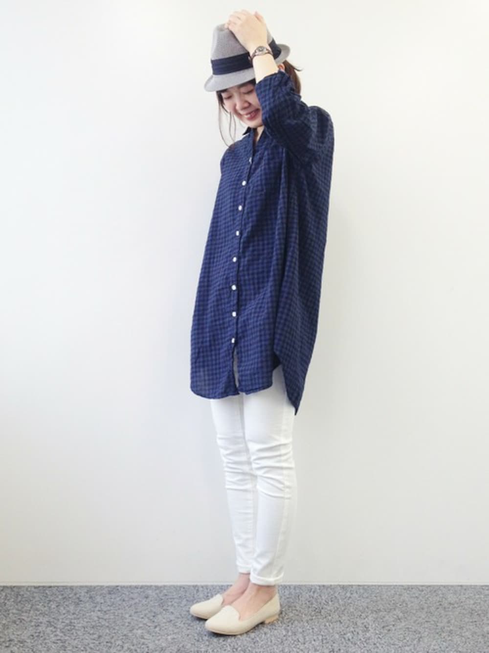 おかだのシャツ/ブラウス「40強撚ボイルシャツチュニック」を使ったコーディネート