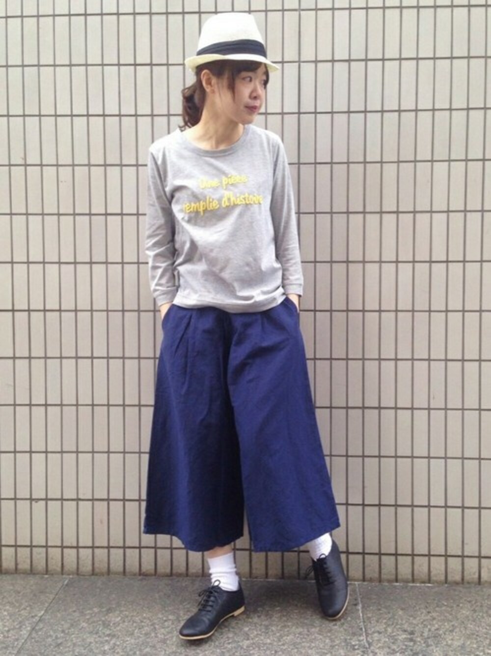 イエローのロゴがポイントのロンTは トレンドのガウチョパンツ、ハットを被って 軽さを出して春らしく(^_^)/♪
