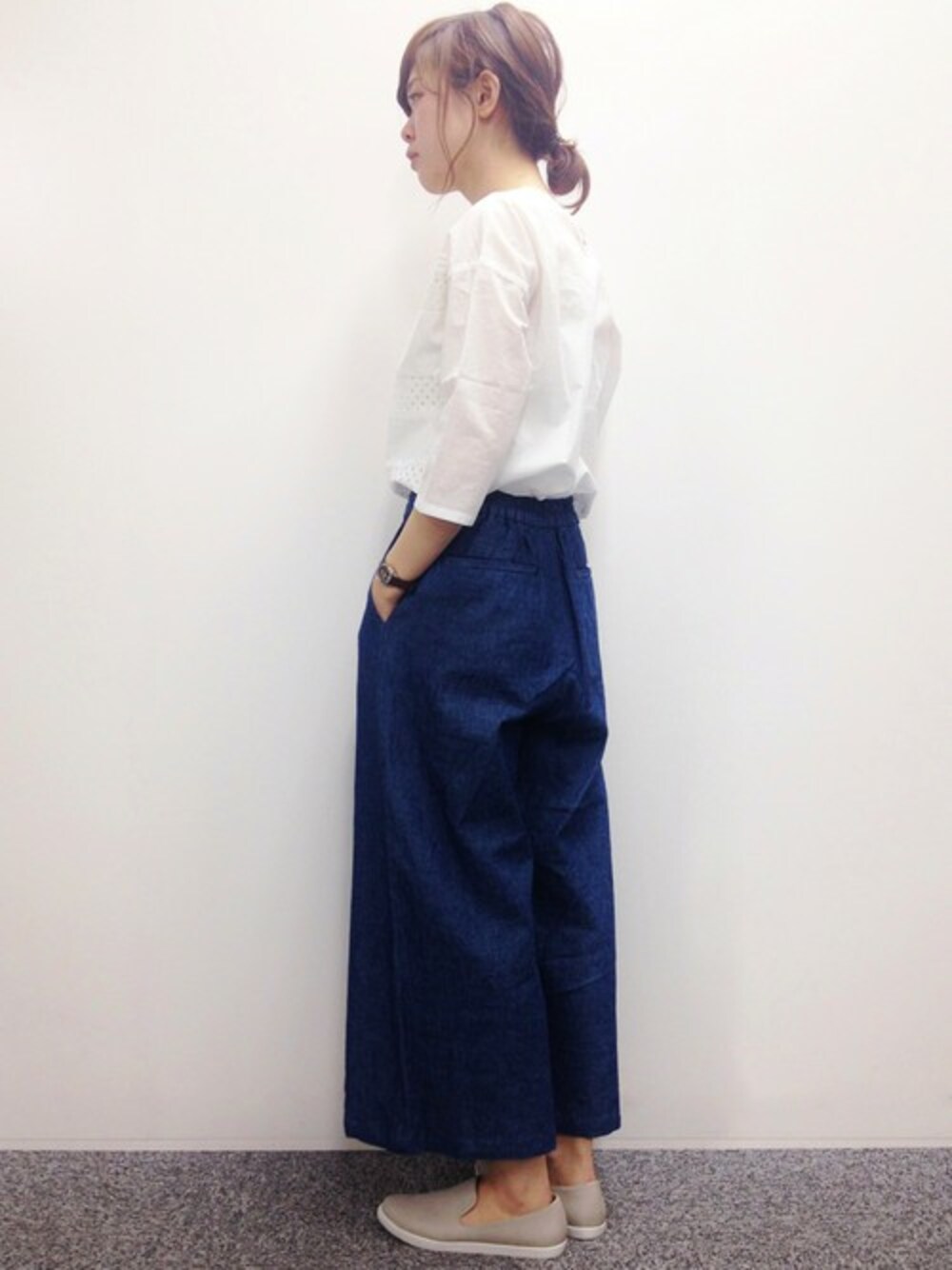 こちらのブラウスは ボーダー状にレースの切り替えになっていて シンプルながら存在感のある1枚! これからの時期に大活躍です(^_^)/♥ ワイドパンツはトレンドのデニム! 履くだけで旬顔になれちゃいますよ~♪