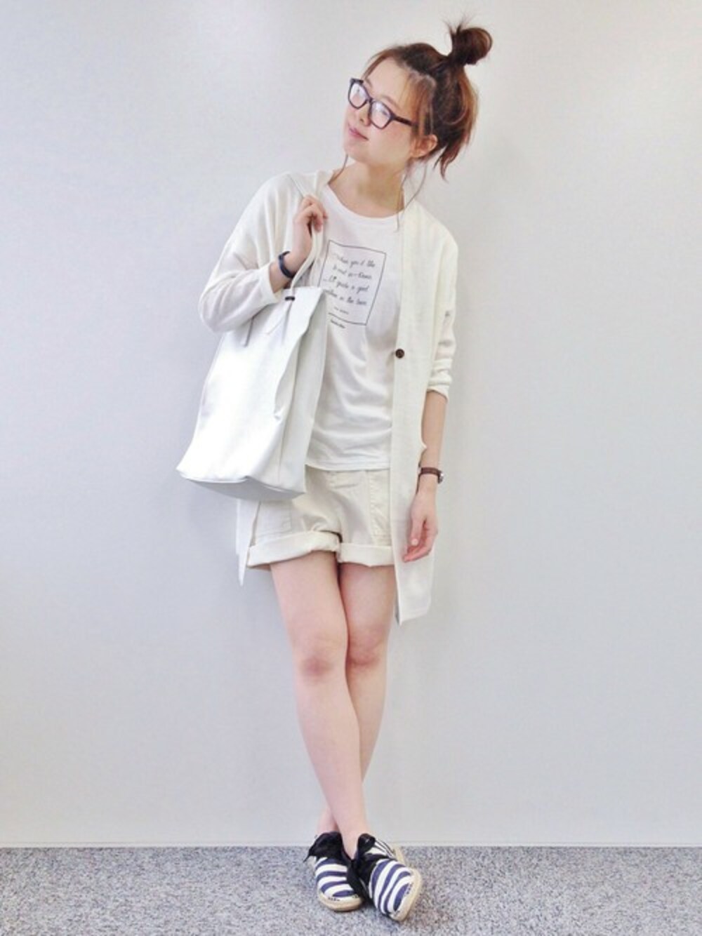 キレイなリネンのカーディガンが入荷です! プリントTとショートパンツで目一杯元気に(^_^)/★ オールホワイトで更に涼しげ! 海に行きたいコーディネート\(^o^)/