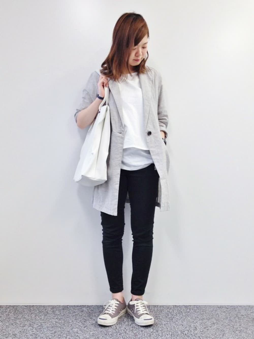 おかだのチェスターコート「リネンコットンチェスター 」を使ったコーディネート