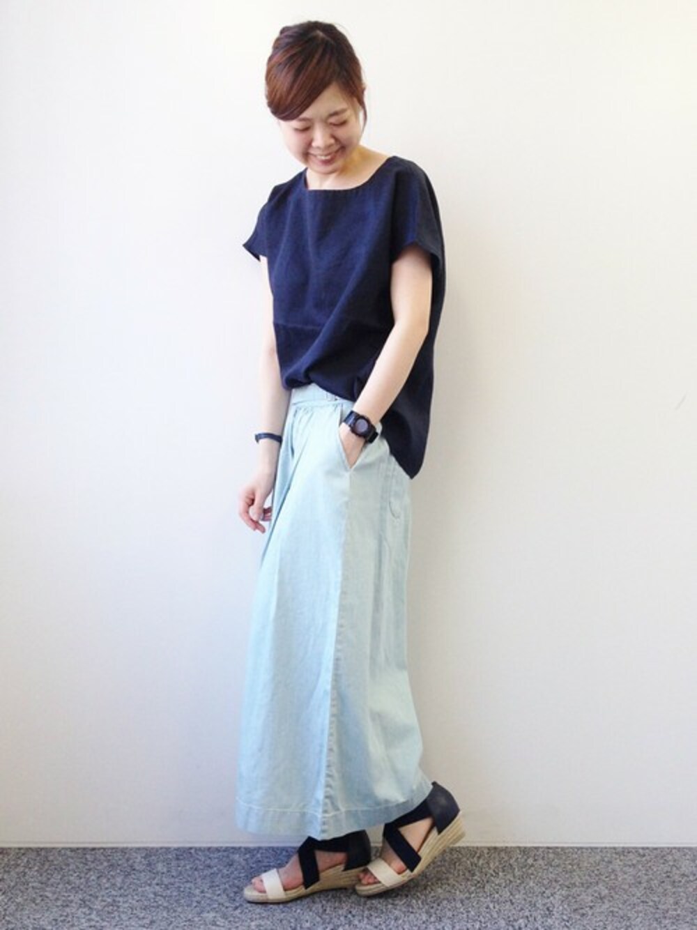大きめブラウス×ガウチョで だっぽりシルエットが可愛いバランス。 前だけINしても、出しても◎ シンプルなデザインとリネン100%がナチュラルで綺麗な雰囲気。