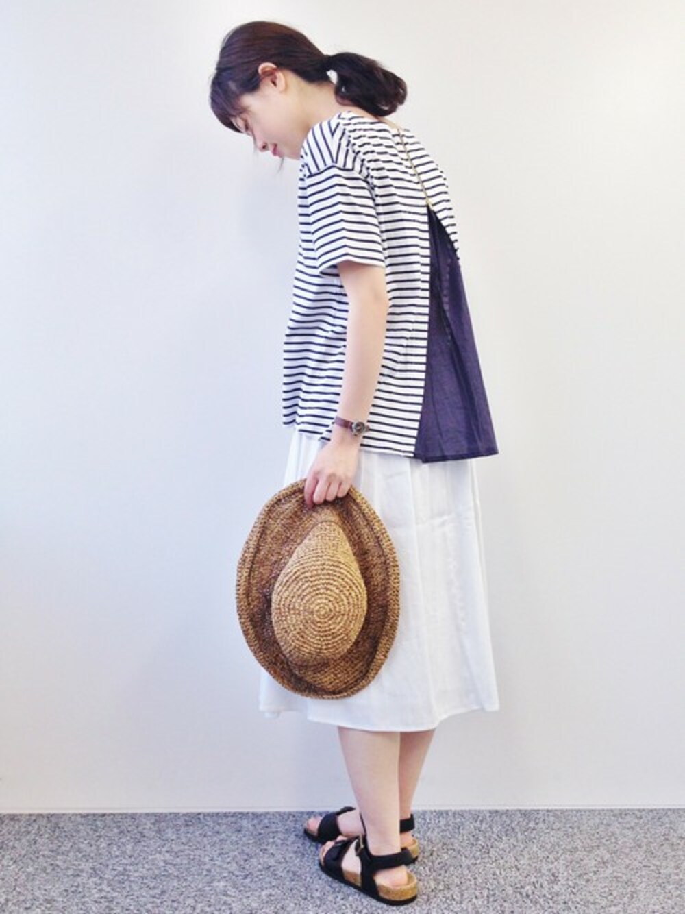 バックのジップと布帛使いが可愛いプルオーバー(^_^) 透け感があるのでとても涼しげに見えます! 白い膝丈スカートを合わせてゆるく夏らしく!