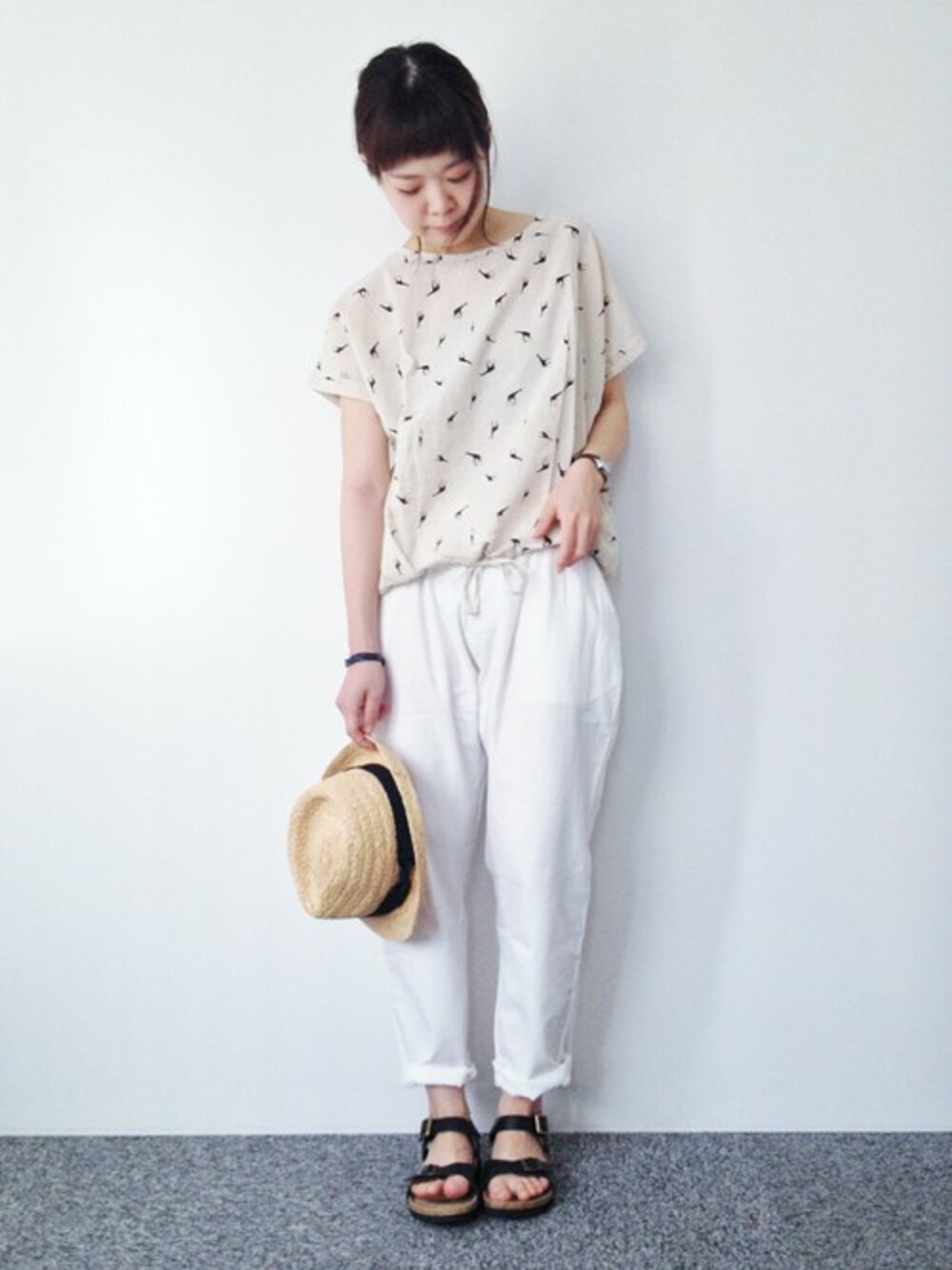 おかだ(LBC HEAD OFFICE)のシャツ/ブラウス「コットンリネンカモメキリンプリントブラウス 」を使ったコーディネート
