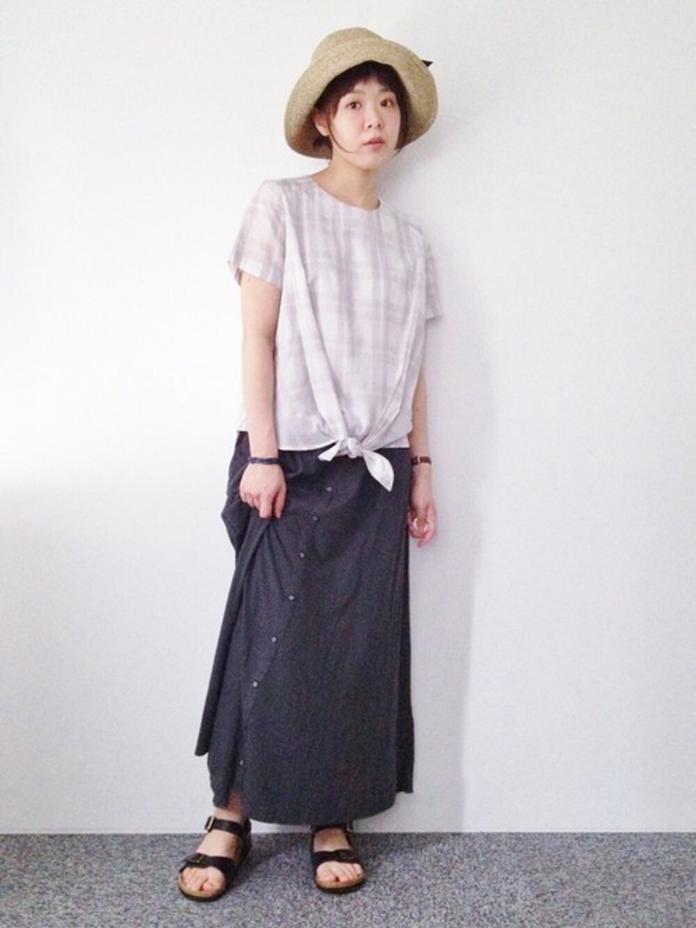 おかだ(LBC HEAD OFFICE)のシャツ/ブラウス「コットンドビーチェックブラウス」を使ったコーディネート