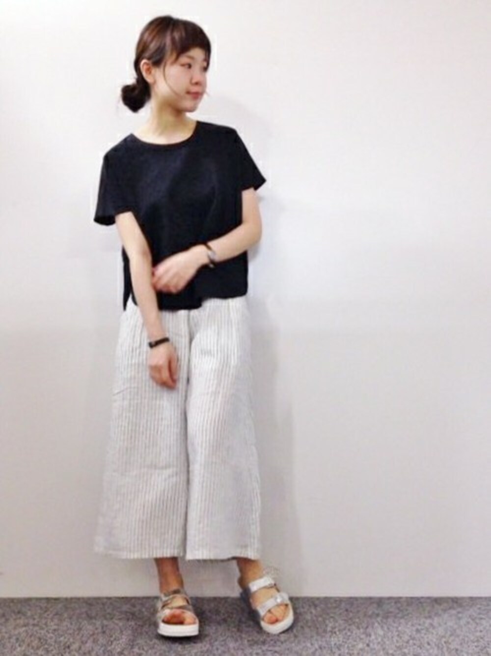 新作のレースブラウスは、シックなブラック、 全面だけのデザインで取り入れやすいです。 パンツは大人気にて再入荷のリネンガウチョ! 着用色は新色のホワイト×ストライプです(^O^)