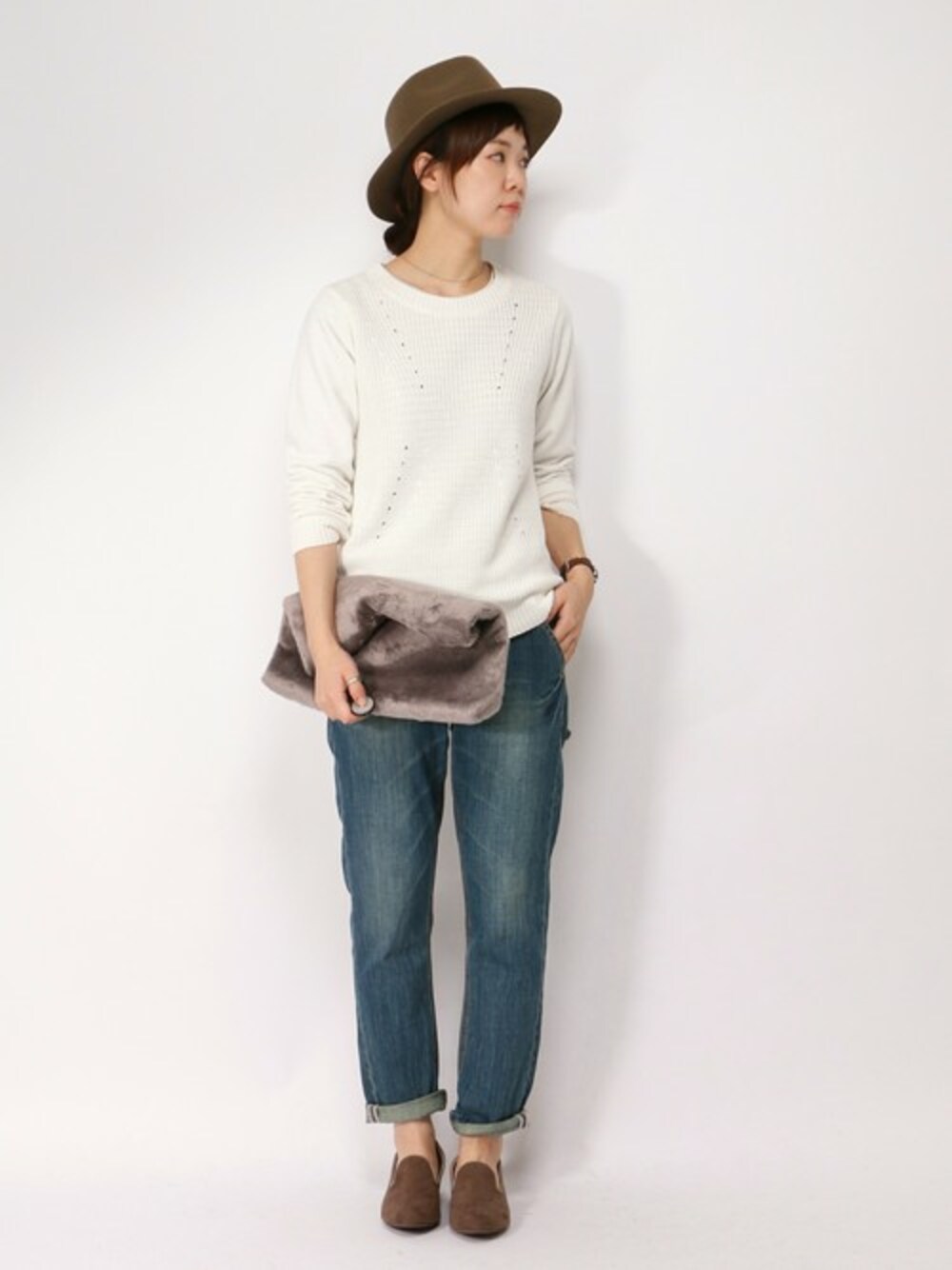 ニット×スウェットがカジュアル可愛いプルオーバー。 デニムと合わせてシンプルに組んでみました。