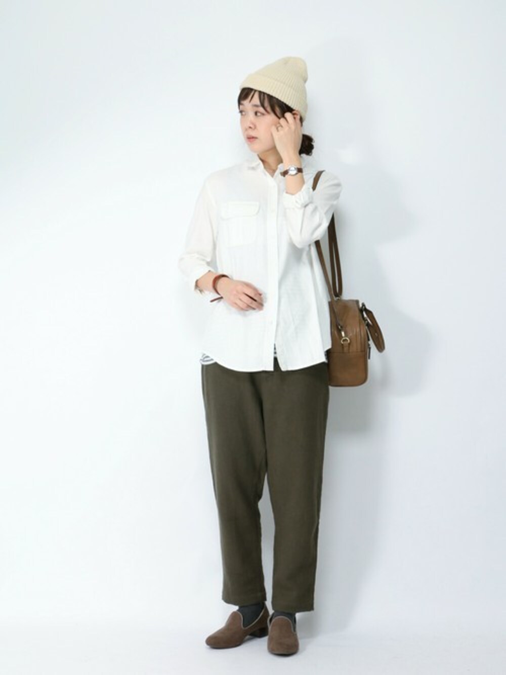 ダブルポケットのメンズライクなシャツ。 起毛素材のほっこりゆるパンをあわせてゆるめにコーデ♪