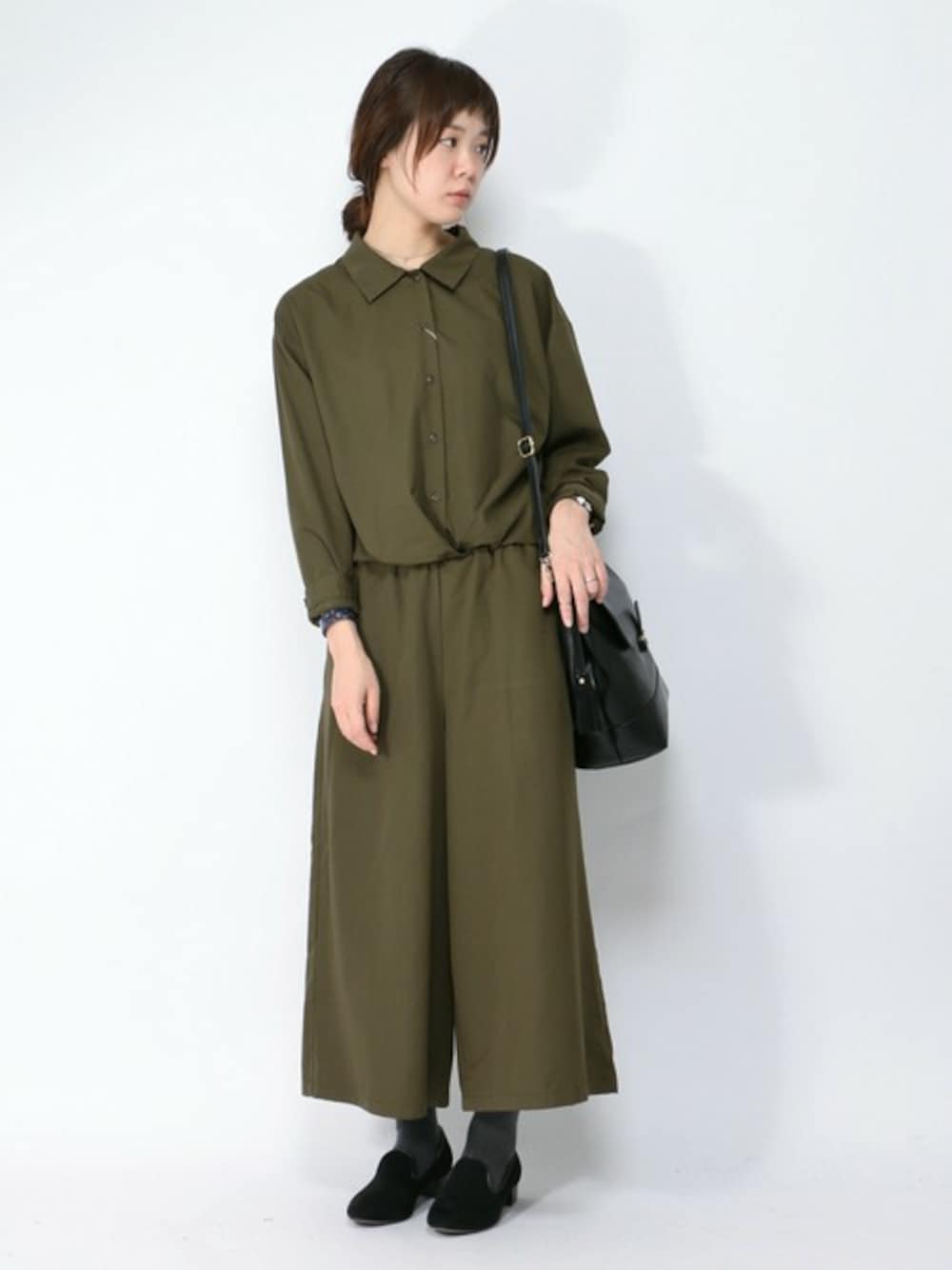 おかだのサロペット/オーバーオール「ポリエステルレーヨンワイドサロペット」を使ったコーディネート