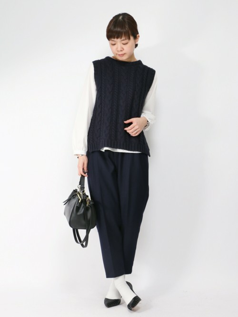 おかだ(LBC HEAD OFFICE)のベスト「アクリルウールバルキーケーブルベスト 」を使ったコーディネート